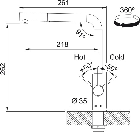 Кухонный смеситель с поворотным вытяжным изливом и боковым рычагом управления. Вытяжной излив позволяет удобно мыть всю поверхность мойки и наполнять посуду, которая расположена за ее пределами. Угол поворота излива составляет 360 градусов назад водяной поток достигает большей площади мойки, а также такой смеситель можно монировать в острове кухни.