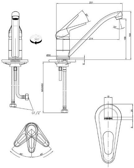 Особенности модели: угол поворота излива 360°, многоуровневый аэратор
