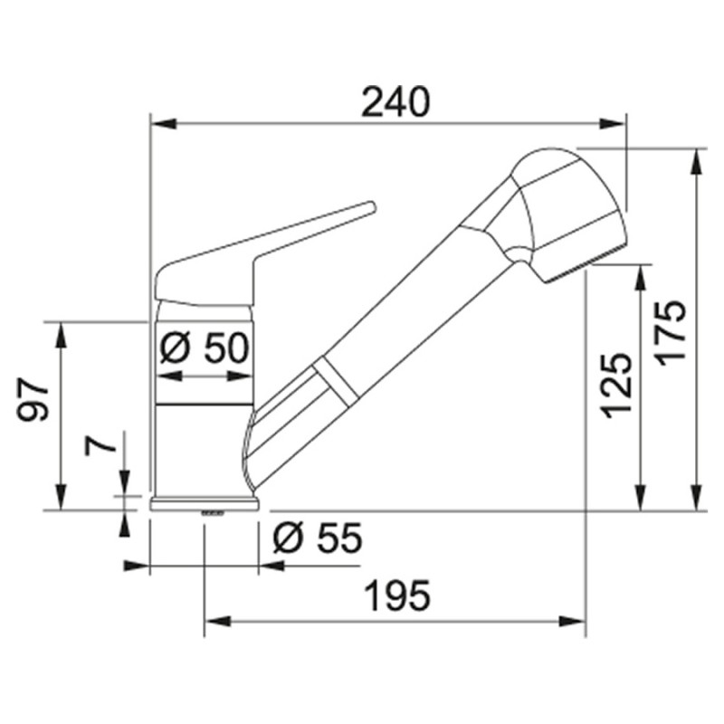 Врезной однорычажный кухонный смеситель Franke Novara-Plus Pull Out (115.0470.665) бежевый с выдвижным изливом (120 см), рычагом сверху и многоуровневым аэратором.