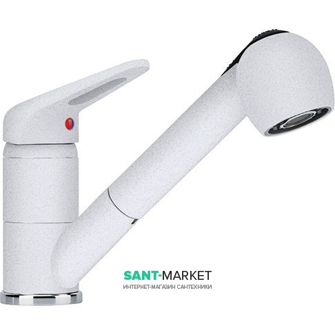 1) Смеситель для кухни Franke Novara-Plus однорычажный с выносным изливом латунь покрытие Fragranit белый