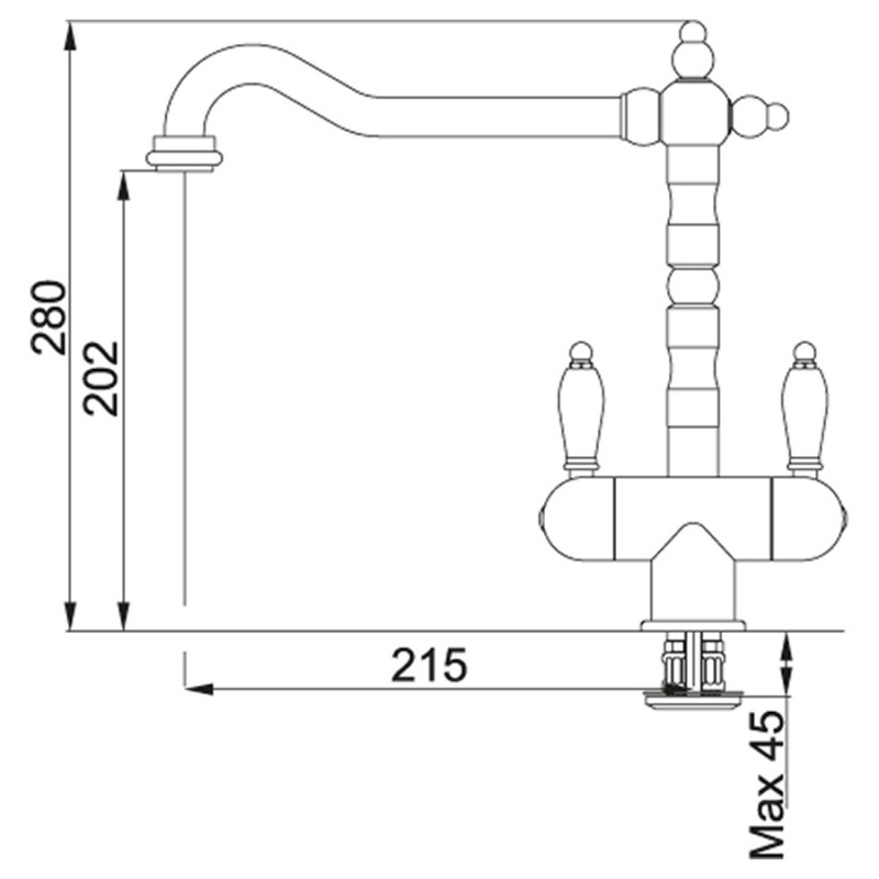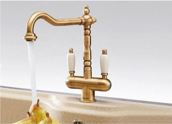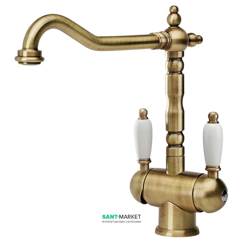 1) Смеситель для кухни Franke Old-England Bicomand двухрычажный латунь бронза