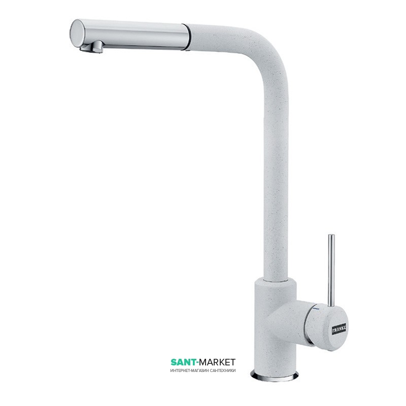 Смеситель для кухни Franke Sirius однорычажный с выносным изливом латунь покрытие Fragranite хром/белый