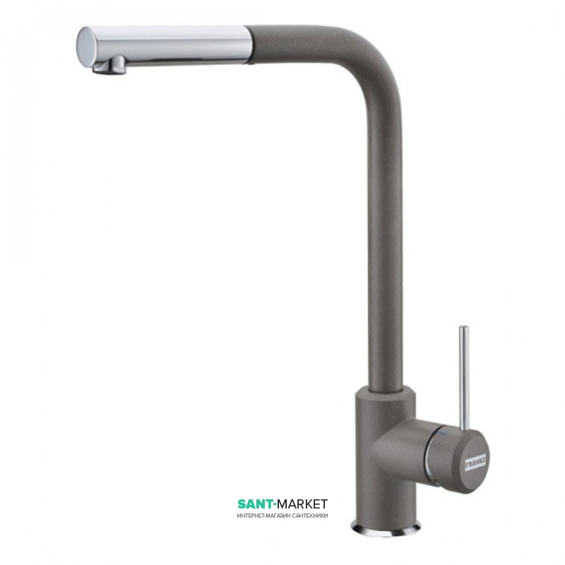 1) Смеситель для кухни Franke Sirius однорычажный с выносным изливом латунь покрытие Fragranite хром/шторм