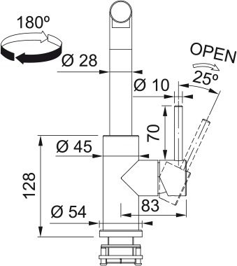 Область поворота излива: