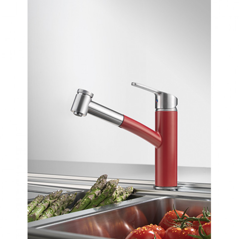 Смеситель для кухни Franke Smart однорычажный с выносным изливом латунь никель оптик/ретро красный 115.0534.219