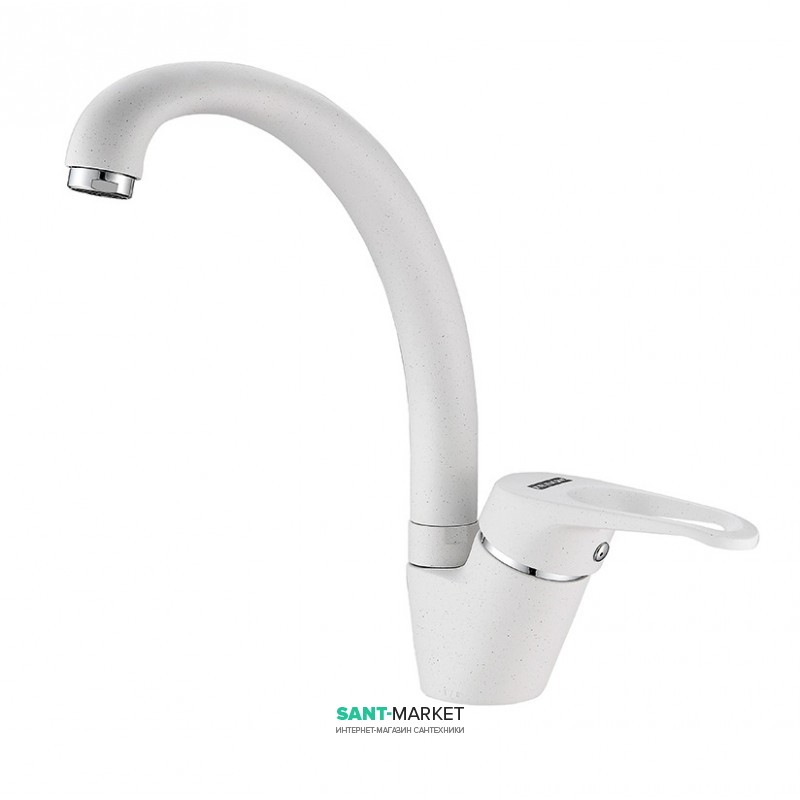 1) Смеситель для кухни Franke Vega однорычажный латунь покрытие Fragranit белый