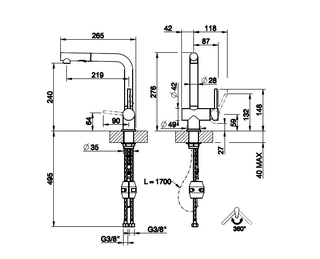 Смеситель для кухни Gessi Acciaio c выдвижной лейкой нержавеющая сталь полированная 60600#239