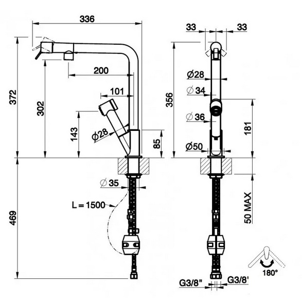 Смеситель для кухни Gessi Fisso с выдвижной лейкой хром 60640#031