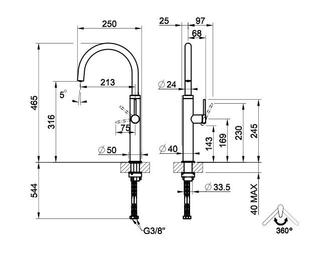 Смеситель для кухни Gessi Flessa однорычажный нержавеющая сталь полированная 60016#239