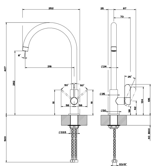 1) Смеситель для кухни Gessi Helium однорычажный хром