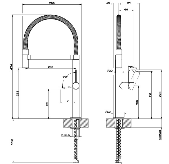 - Длина излива: 230 мм