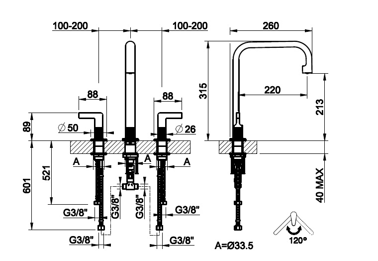 Смеситель для кухни Gessi Inciso на 3 отверстия латунь
