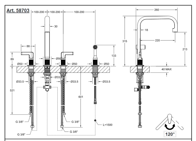 1) Смеситель для кухни Gessi Inciso на 4 отверстия с выдвижным душем черный металл брашированный