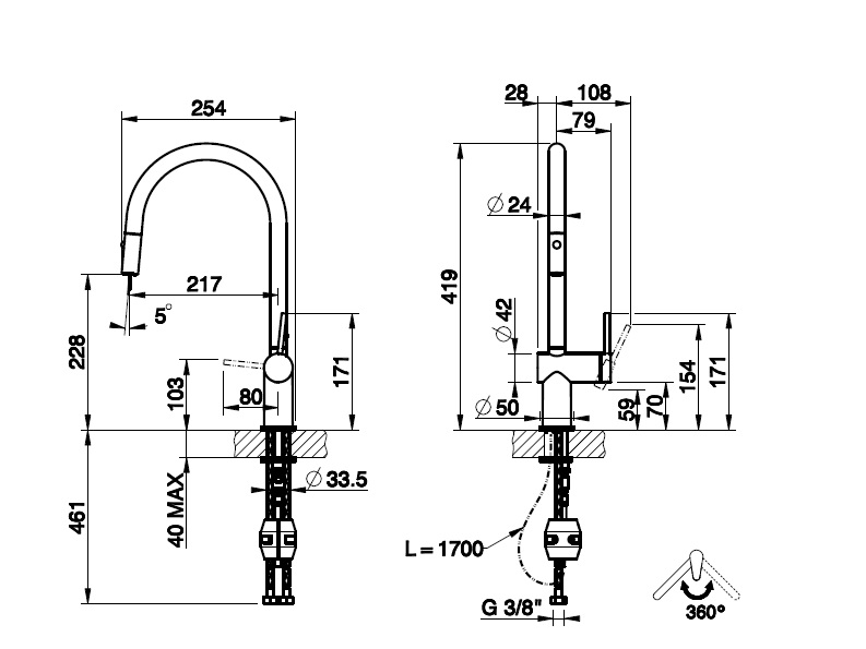 Смеситель для кухни Gessi Inedito с выдвижной лейкой хром 60413#031