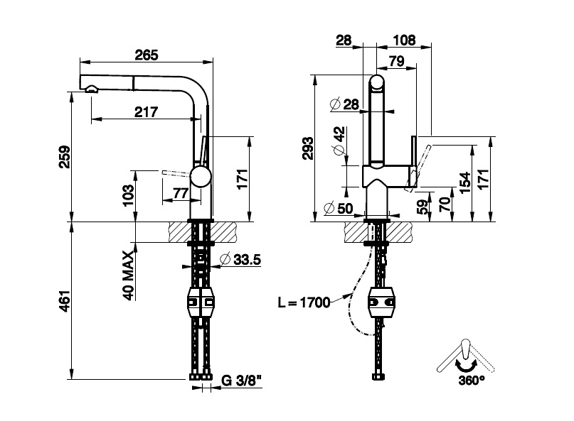 Смеситель для кухни Gessi Inedito с выдвижной лейкой однорычажный хром 60433#031