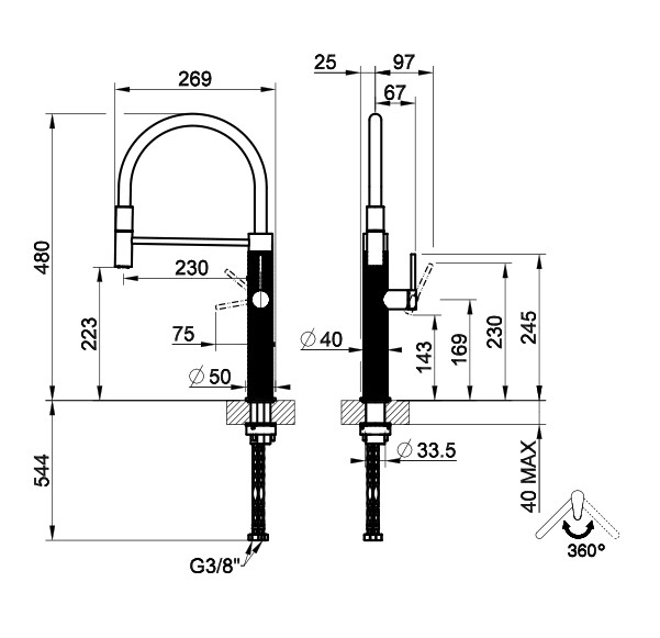 Смеситель для кухни Gessi Meccanica с выдвижной лейкой латунь брашированная 60012#727