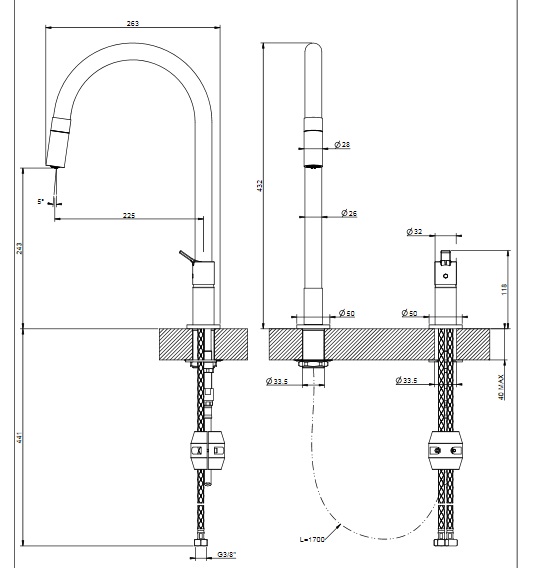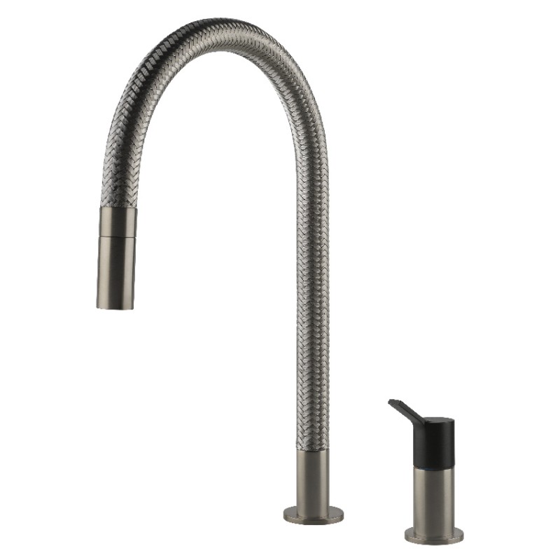 1) Смеситель для кухни Gessi Mesh однорычажный нержавеющая сталь/чёрный