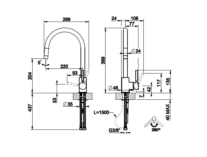 Смеситель для кухни Gessi Neutron с выдвижной лейкой хром 17120#031