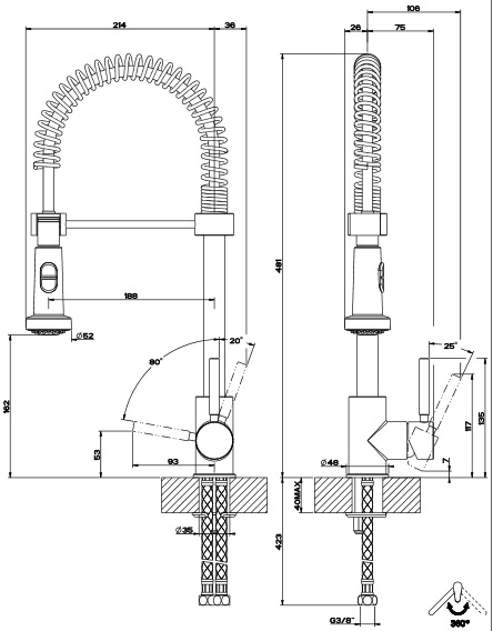 1) Смеситель для кухни Gessi Neutron с вытяжной лейкой хром