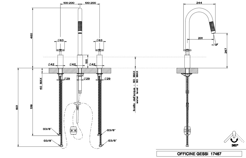 1) Смеситель для кухни Gessi Officine с выдвижной лейкой матовый черный