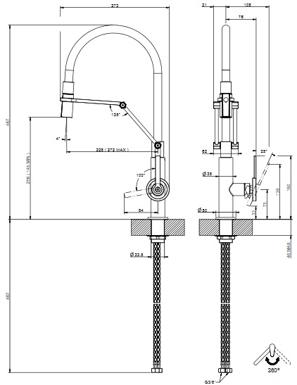 1) Смеситель для кухни Gessi Officine Volantino с вытяжной лейкой черный металл брашированный