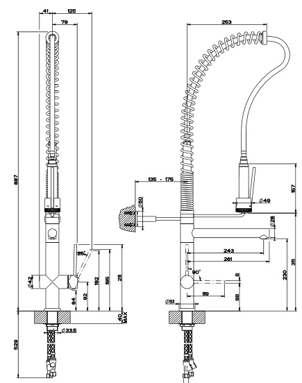 1) Смеситель для кухни Gessi Oxygene Cucina HT с выдвижной лейкой хром