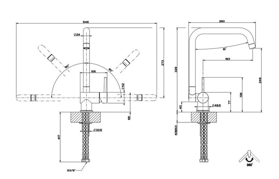 Смеситель для кухни Gessi Oxygene однорычажный под окно слаживающийся нержавеющая сталь