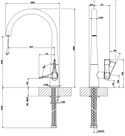 Смеситель для кухни Gessi Proton однорычажный матовый черный 17151#299