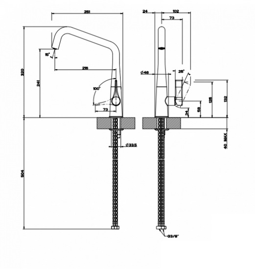 1) Смеситель для кухни Gessi Proton однорычажный хром
