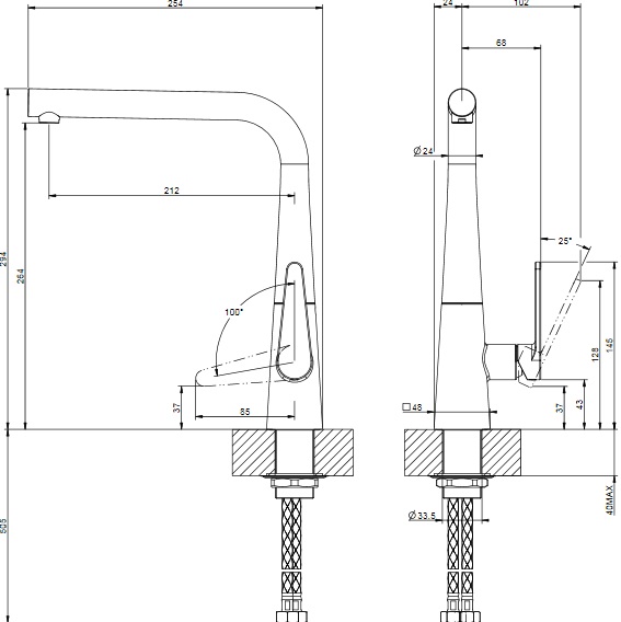 1) Смеситель для кухни Gessi Proton S однорычажный нержавеющая сталь