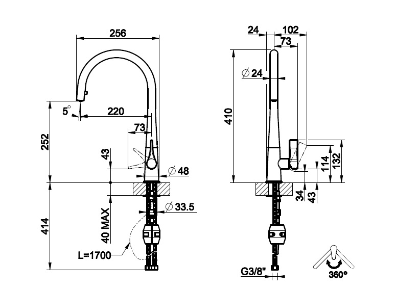 Смеситель для кухни Gessi Proton с выдвижной лейкой матовый черный 17153#299