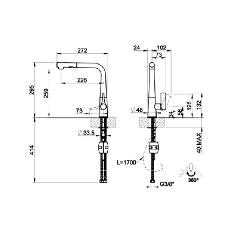 1) Смеситель для кухни Gessi Proton с вытяжной лейкой матовый черный