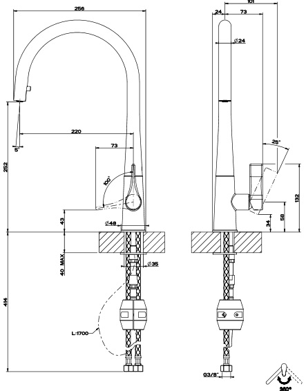 1) Смеситель для кухни Gessi Proton с вытяжной лейкой нержавеющая сталь