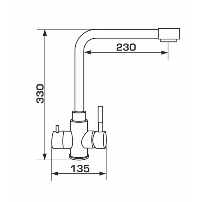- высота смесителя - 330 мм