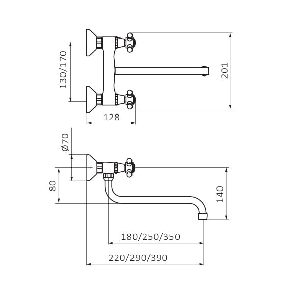 - Длина излива: 250 мм