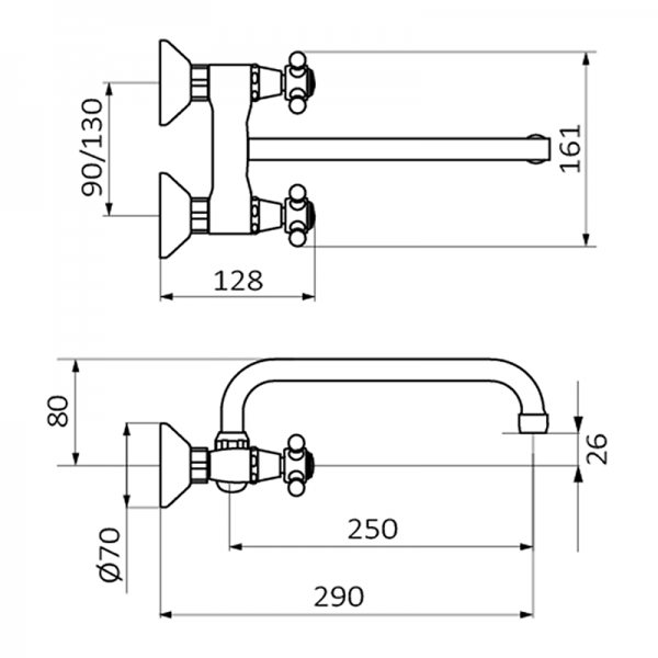 1) Смеситель для кухни GRB Cocinas 1866 двухвентильный настенный хром