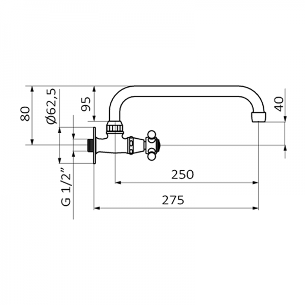 1) Смеситель для кухни GRB Cocinas 1866 одновентильный настенный хром