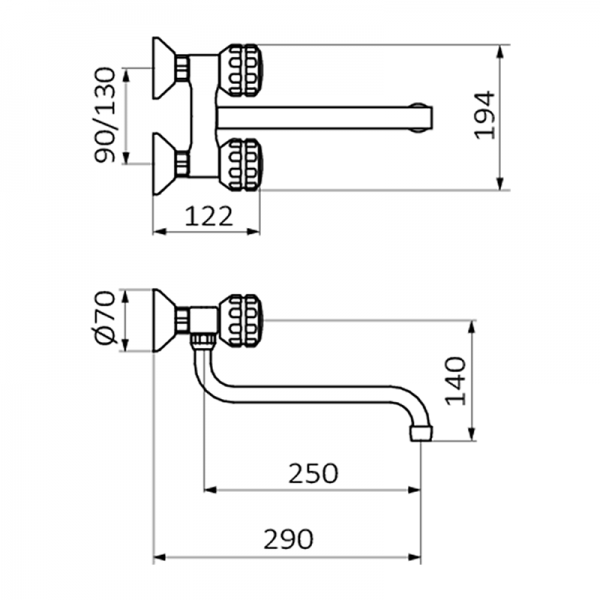 1) Смеситель для кухни GRB Cocinas двухвентильный хром