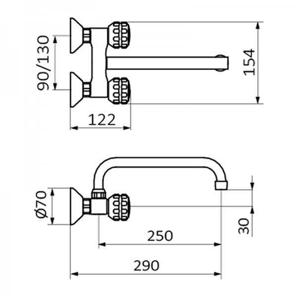 1) Смеситель для кухни GRB Cocinas двухвентильный хром