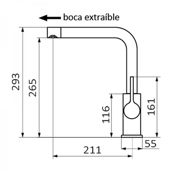 - Длина излива, мм: 211