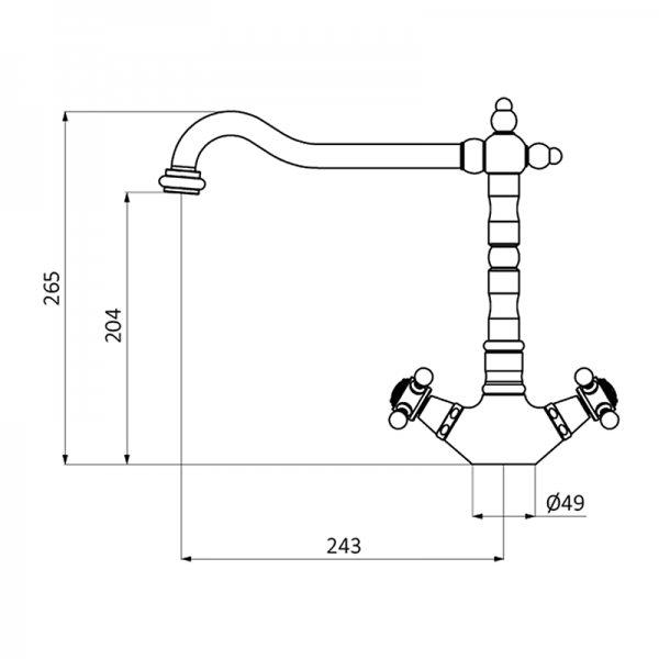1) Смеситель для кухни GRB Cocinas Retro двухвентильный хром