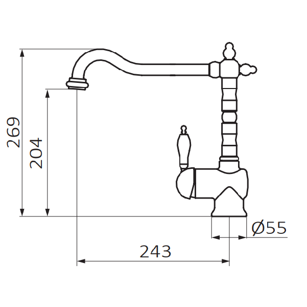 - Высота смесителя, мм: 269