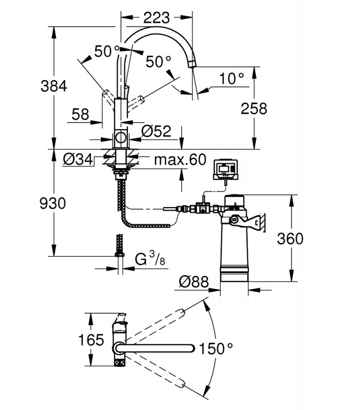 В кухонном смесителе GROHE Blue Minta Pure Eurosmart сочетаются функции обычного смесителя для мойки и системы фильтрации воды.