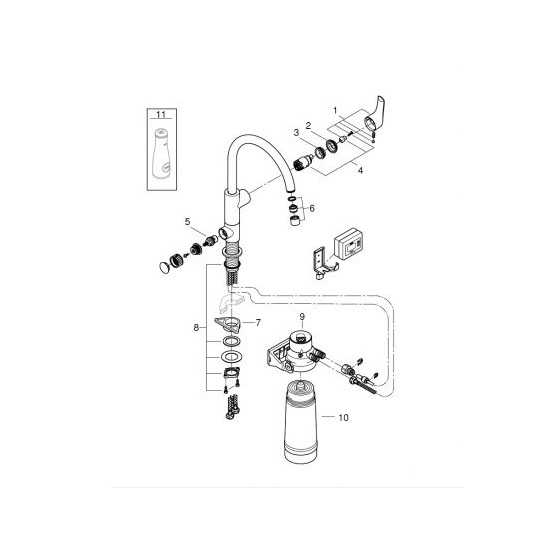 - Дополнительно: GROHE Blue фильтр на основе активированного угля для превосходного вкуса; объем 3000 л; таймер замены фильтра, включая 2 батарейки АА