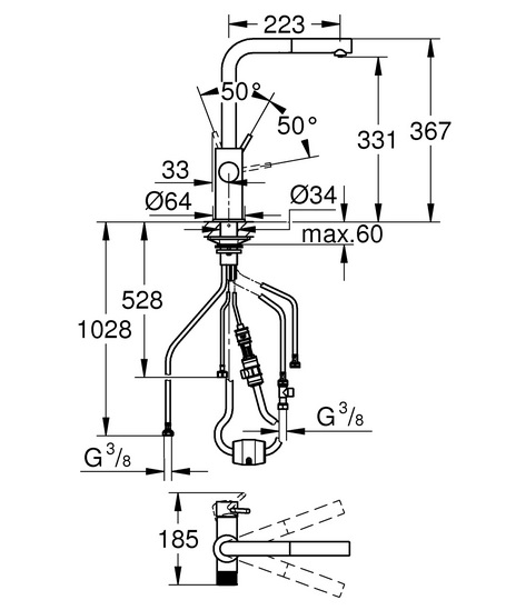 - Однорычажный смеситель для мойки GROHE Blue с функцией фильтрации