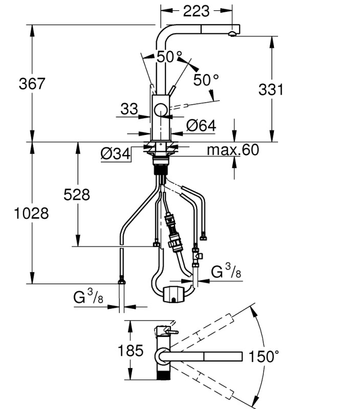Смеситель для кухни Grohe Blue Pure Minta под фильтр с выдвижной лейкой хром 30601000