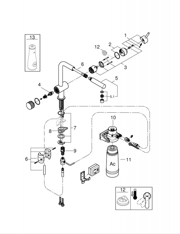- Дополнительно: GROHE Blue фильтр на основе активированного угля для превосходного вкуса; объем 3000 л; таймер замены фильтра, включая 2 батарейки АА