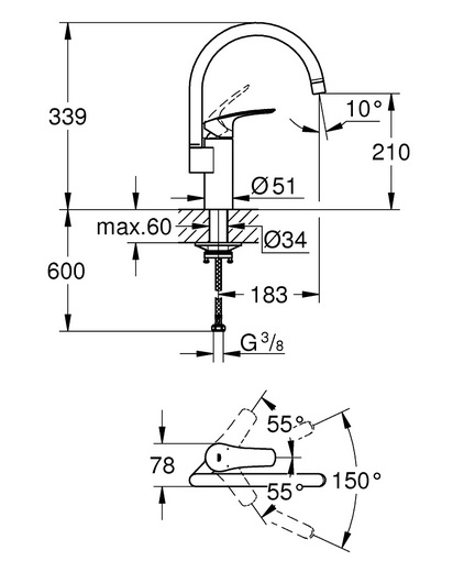 Смеситель для кухни Grohe Eurosmart однорычажный черный матовый 332022433