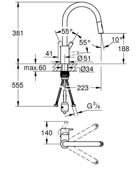 - GROHE EasyDock Легкое вытягивание и возврат на место выдвижного излива