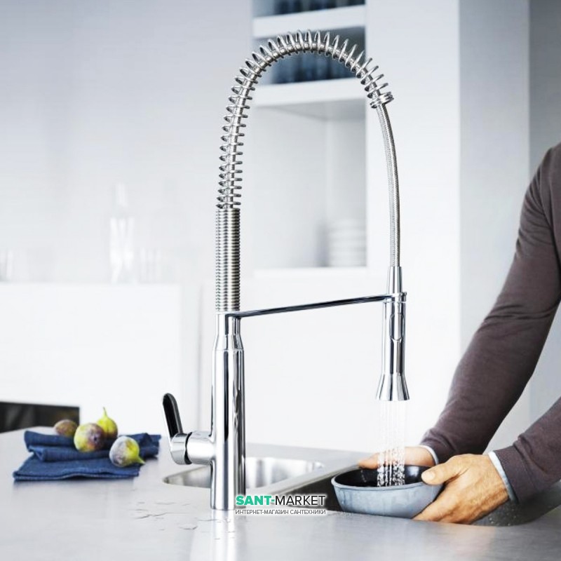 Смеситель для кухни с выдвижной лейкой Grohe K7 однорычажный на гибкой пружине 31379000